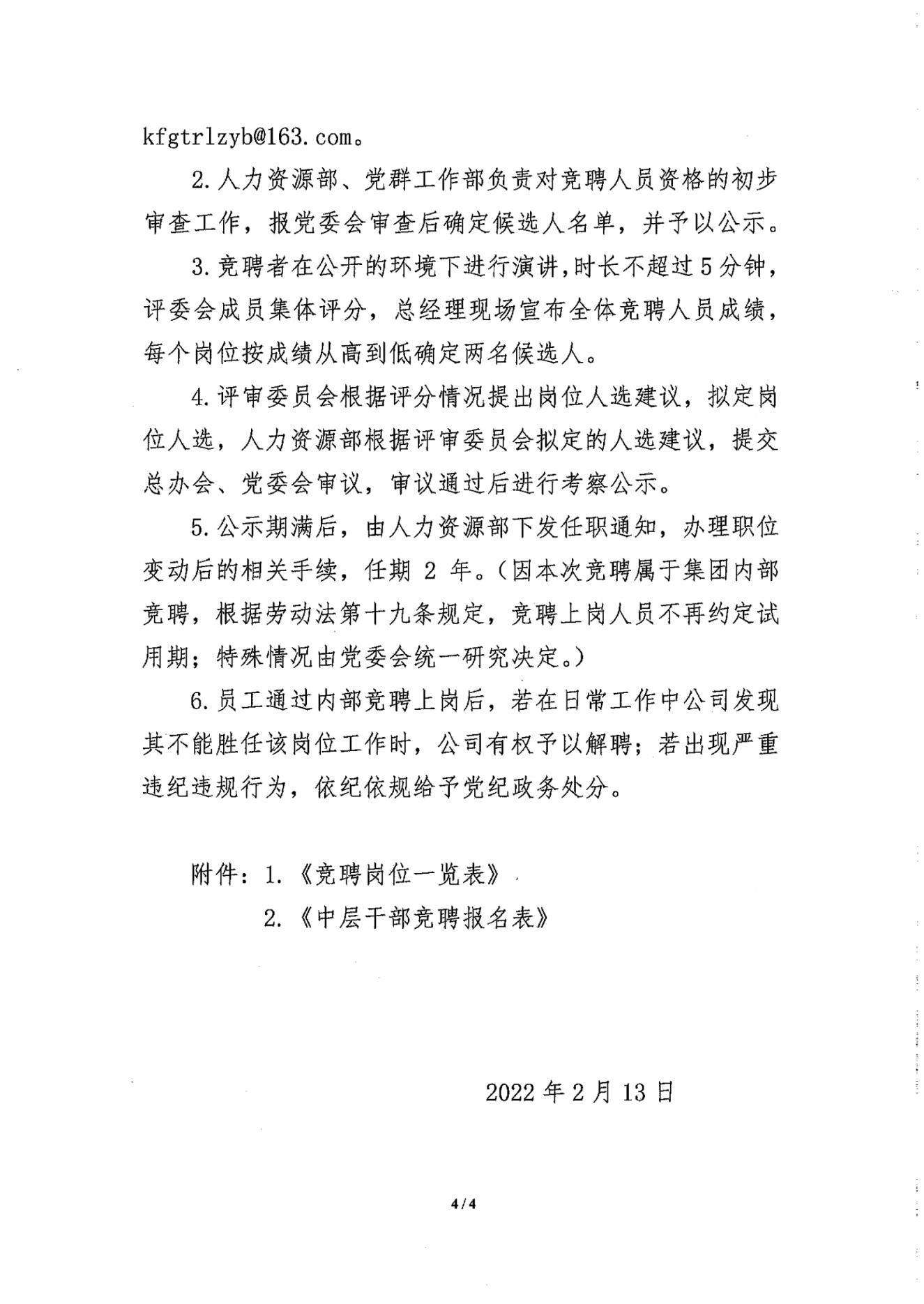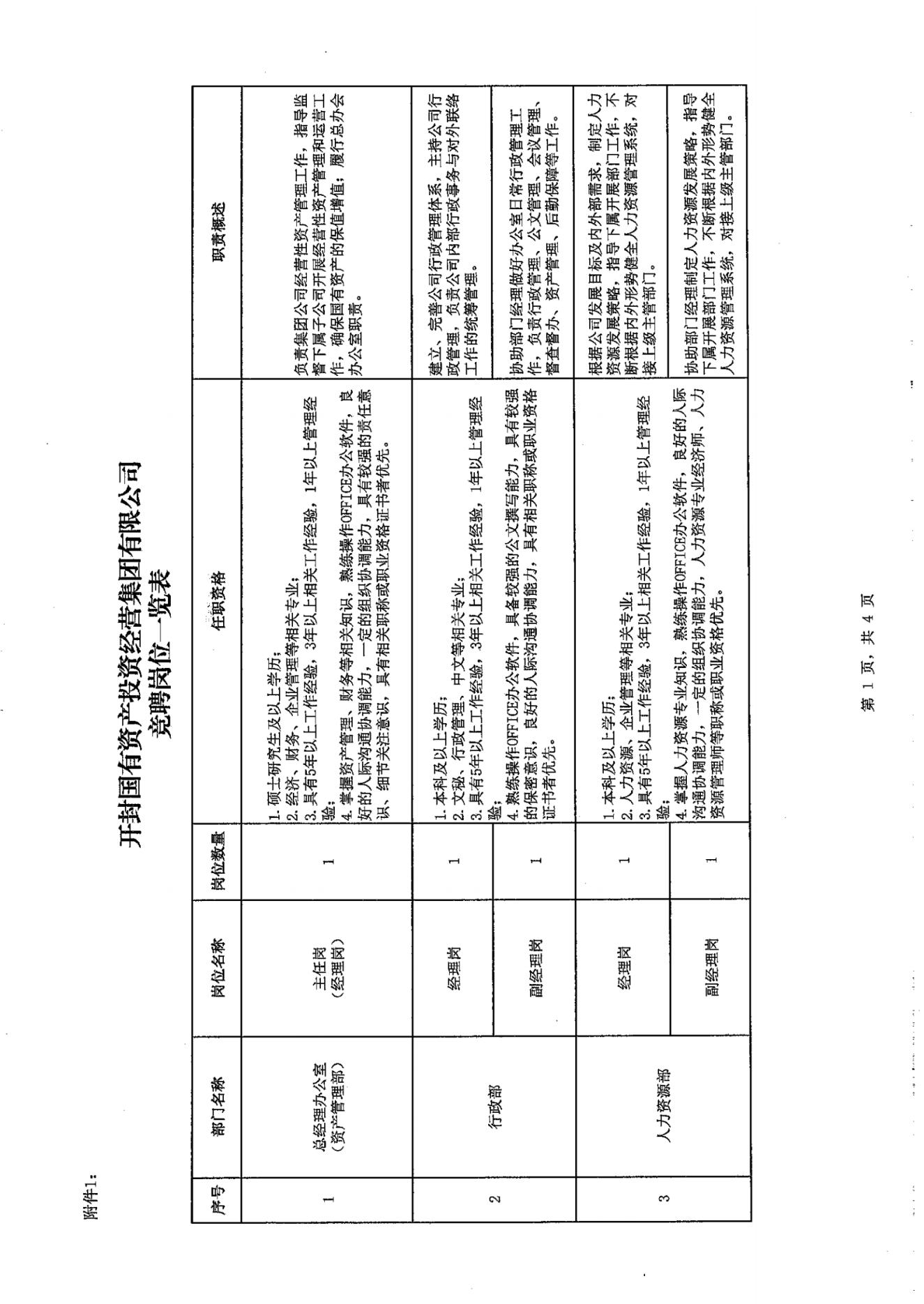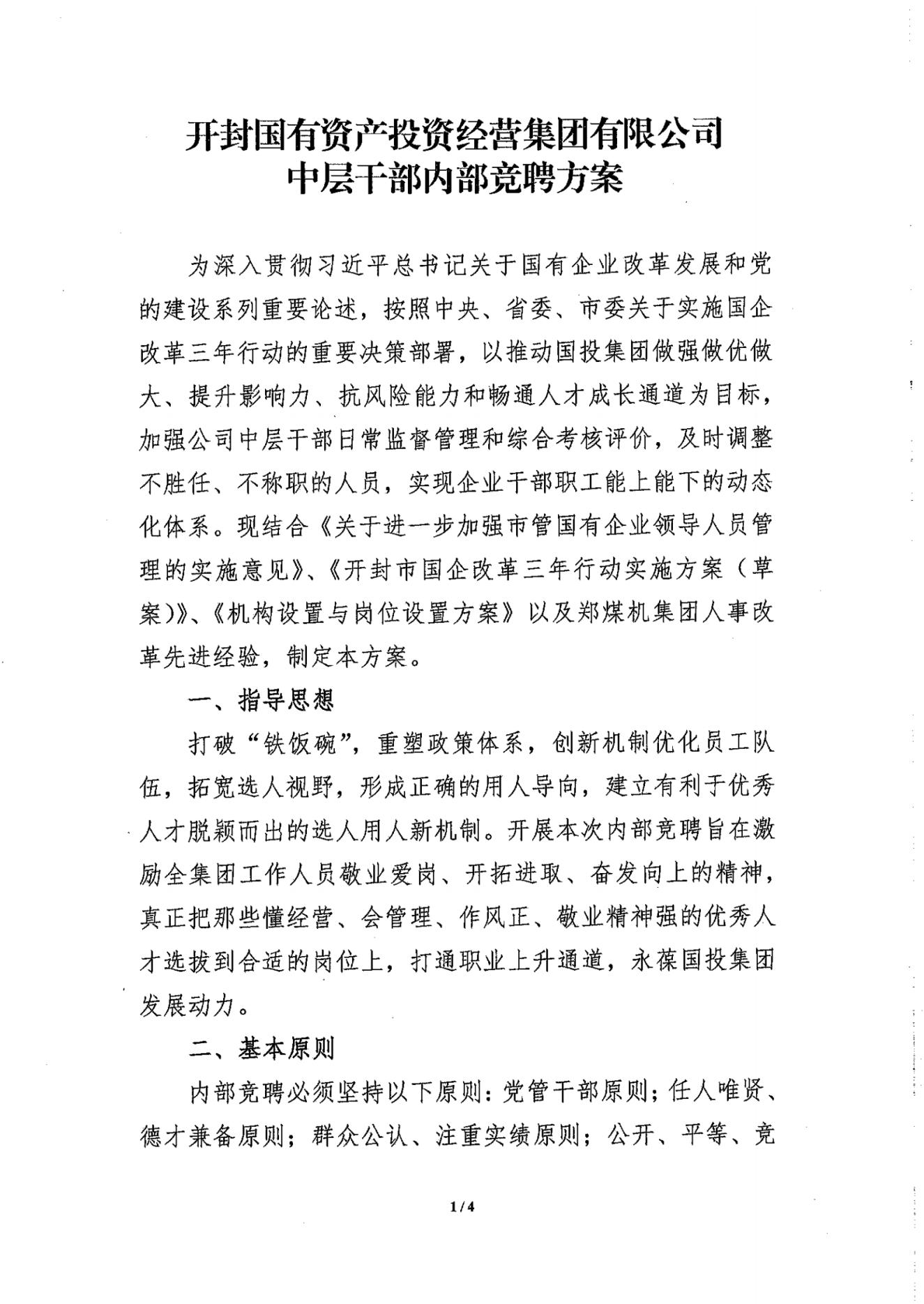 關于下發(fā)《開封國有資產投資經營集團有限公司中層干部內部競聘方案的通知》